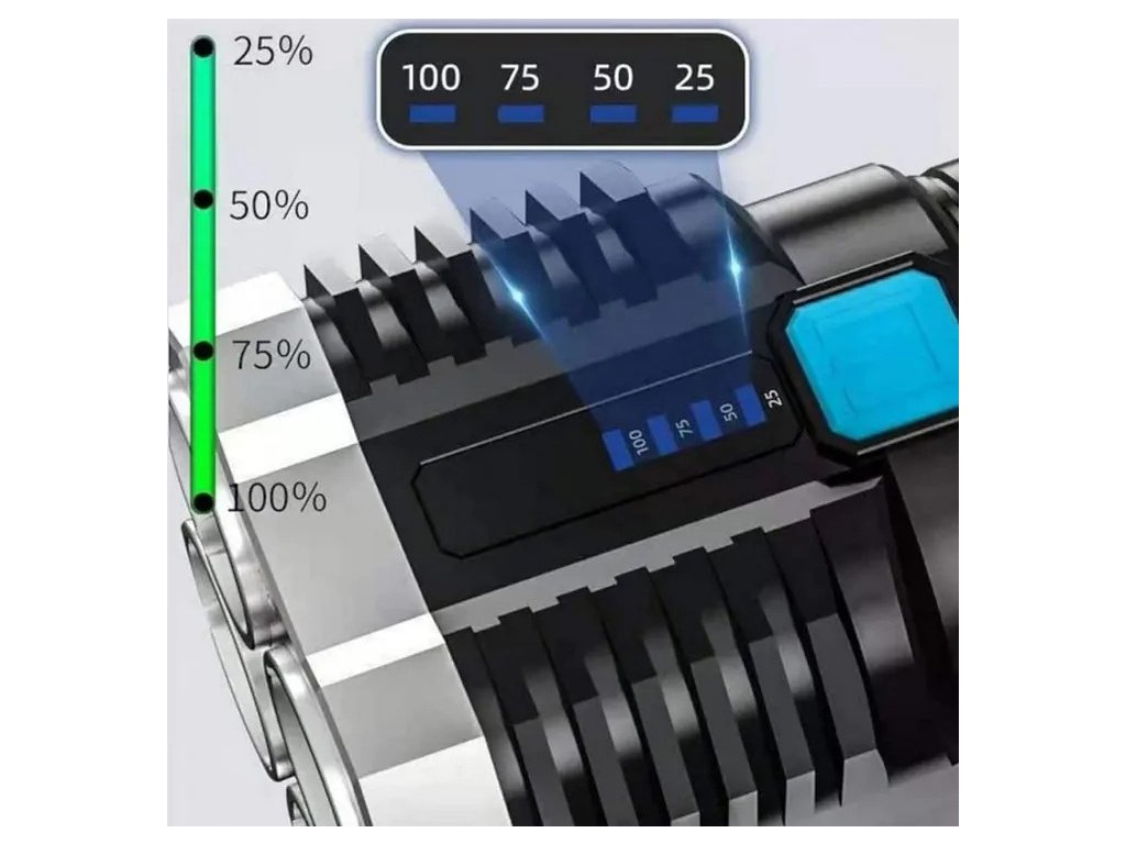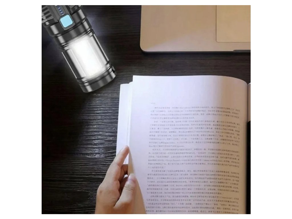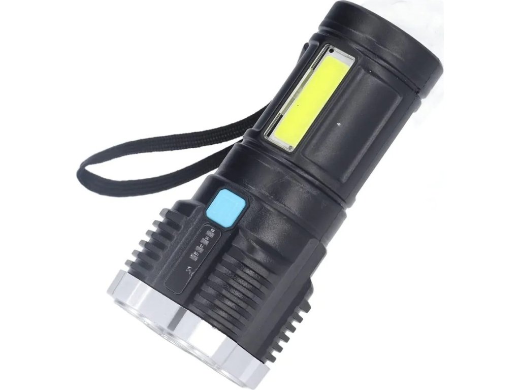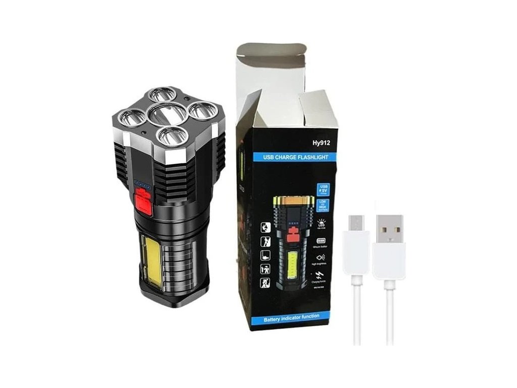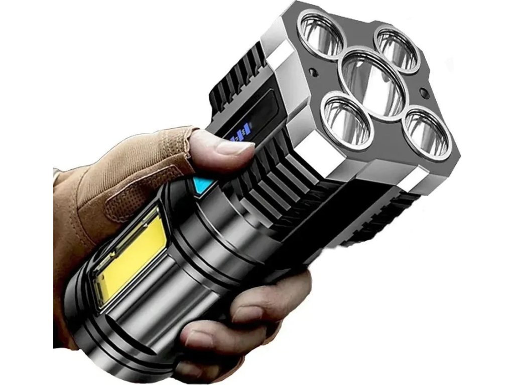 Veľmi výkonné prenosné dobíjacie svietidlo vybavené 5 veľmi jasnými LED diódami a ďalšie bočné COB.