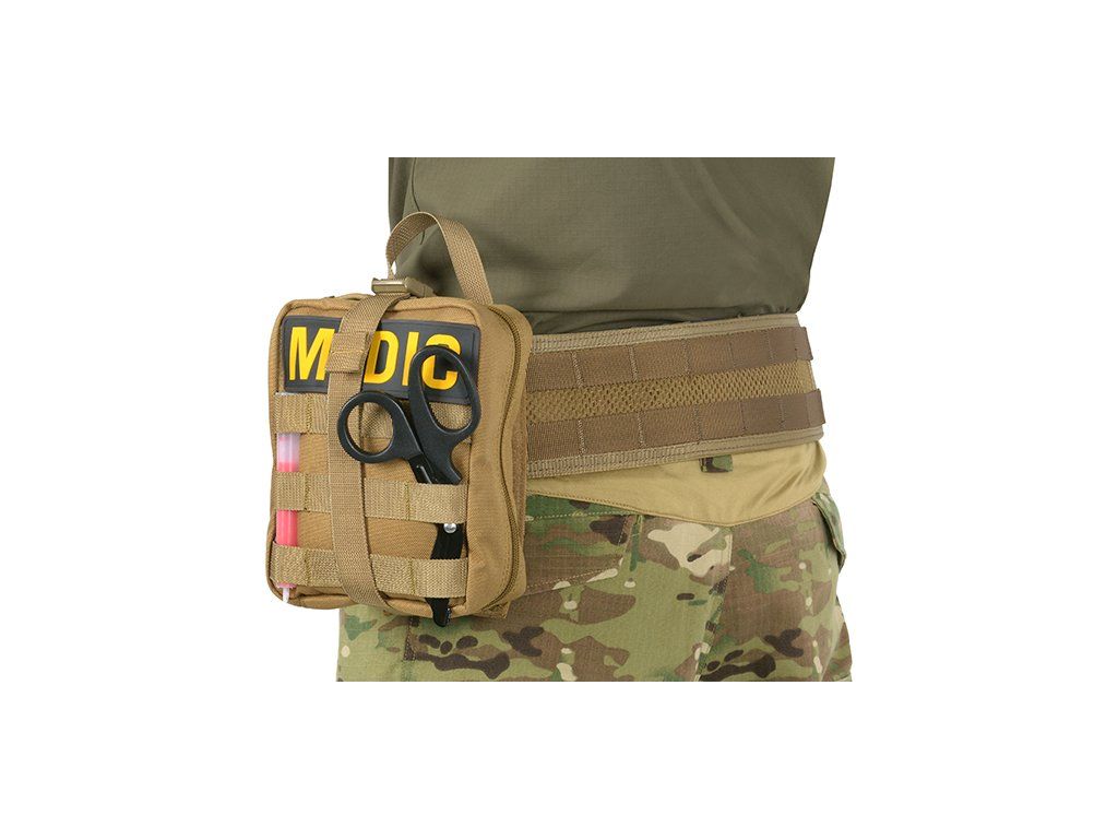 Lekárske puzdro navrhnuté spoločnosťou 8FIELDS, spoločnosťou vyrábajúcou moderné taktické vybavenie. Vyrobené z vysoko kvalitného polyesteru 1000D, ktorý sa vyznačuje vysokou odolnosťou proti mechanickému poškodeniu a vďaka PU úprave, odolnosti voči snehu a vode. Vďaka odtrhávaciemu a vyklápaciemu dizajnu s vnútorným organizérom poskytuje lekárnička rýchlejší prístup k individuálnej lekárskej výbave. Kompatibilný so všetkými platformami MOLLE.