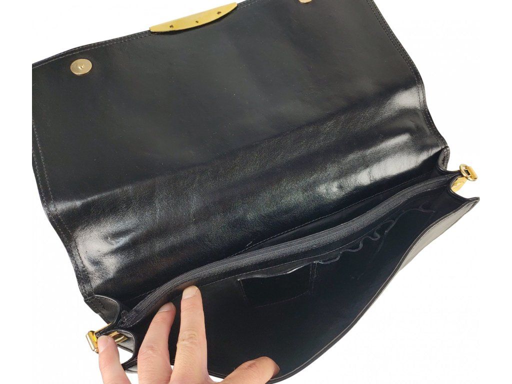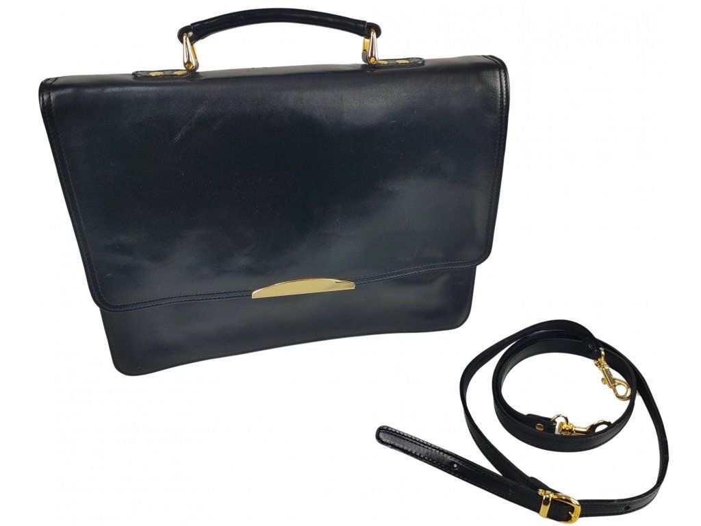 Kožená taška diplomatka s popruhom cez rameno čierna veľká Holandsko originálne