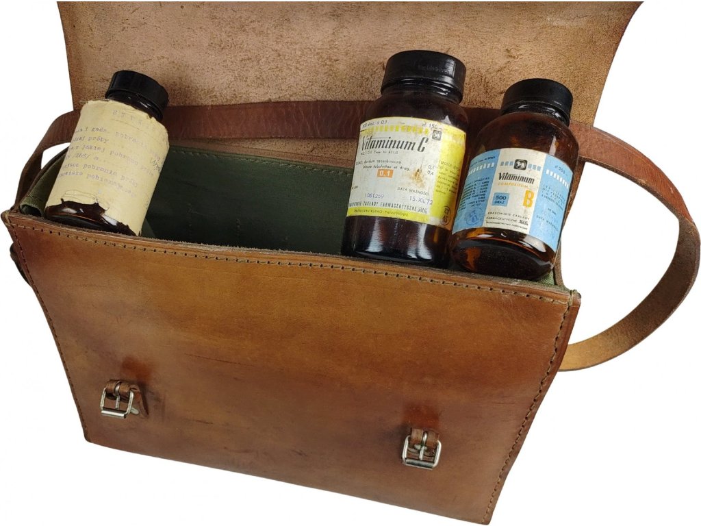 Originálna poľská pracovná vojenská taška cez rameno. Štýlový a poctivý retro kúsok, vyrobený poľskými zručnými kožiarskymi remeselníkmi z prvotriednej pravej prírodnej kože hrúbky od 3,5 mm na veku tašky po 4 mm na konštrukciu. Useň je živočíšneho pôvodu, s hladkým povrchom, hnedej farby, ktorá sa skvele hodí k väčšine outfitov. Nosenie cez rameno vďaka koženému, nitovanému popruhu nastaviteľnej dĺžky pomocou pracky na tŕň. Hlavný priestor tašky je s horným prístupom s preklápacou koženou chlopňou, zaistenou pomocou 2 nastaviteľných kožených remienkov so sponou na tŕň. Vnútri hlavného priestoru pod dvojdielnou šnurovacou klopou je po vnútornom obvode niekoľko zasúvacích vreciek pre prehľadnú organizáciu nástrojov, lekárskeho materiálu alebo rôzneho náradia. Pôvodne nosená vojenskými zdravotníkmi, ošetrovateľmi, doktormi, lekárskym personálom, ale aj pre svoju praktickosť a veľkú odolnosť s dlhou životnosťou našla svoje uplatnenie aj u rôznych servisných technikov, údržbárov, elektrikárov a remeselníkov. S prirodzenou patinou sa perfektne hodí aj na bežné užívanie.