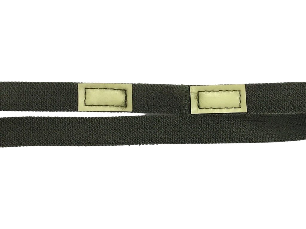 Tento originálny opasok na helmu z USA je skutočným prebytkom z konca 90. rokov 20. storočia. Je navrhnutý tak, aby zaistil kryt (obal/prevlek) na prilbu, obsahuje dve "mačacie oči" svietiace v tme pre nočnú viditeľnosť.