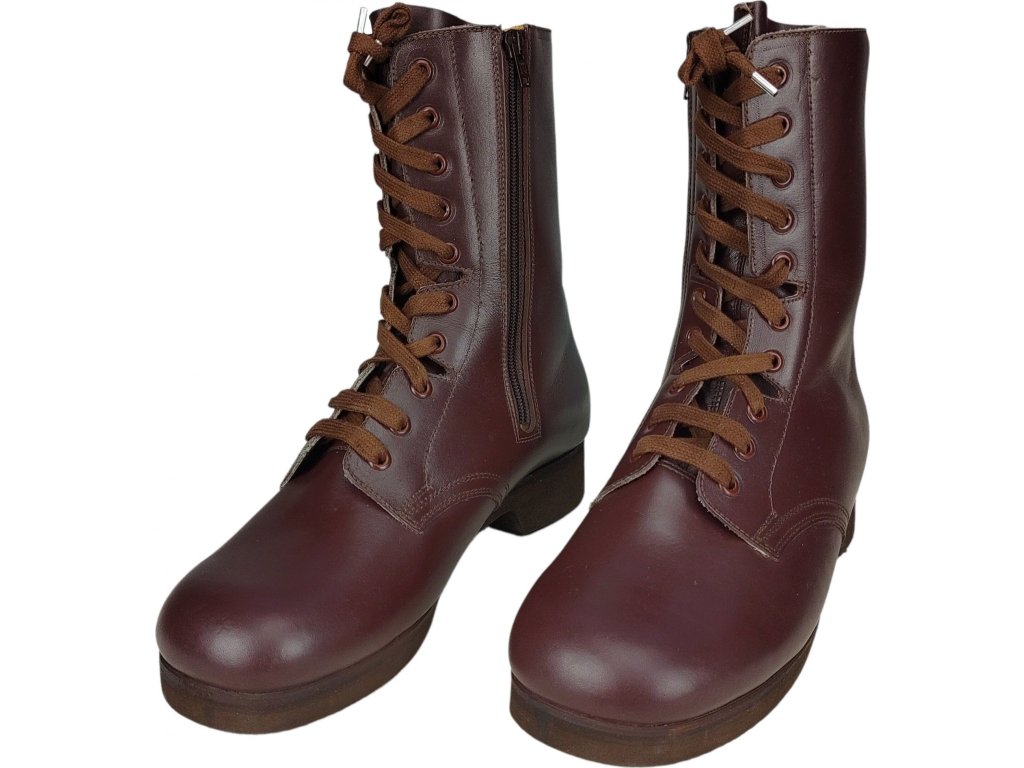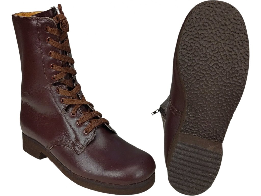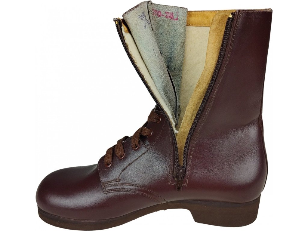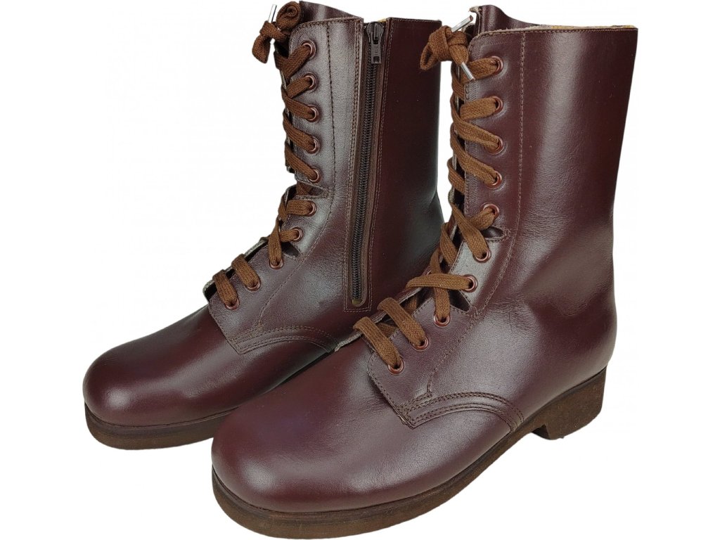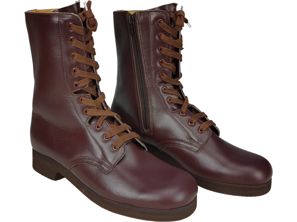 - Vysoké vojenské topánky, vyrobené z pravej poctivej kože.