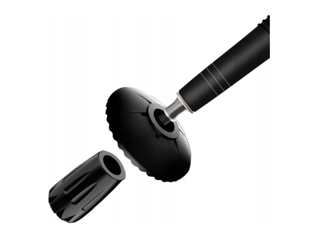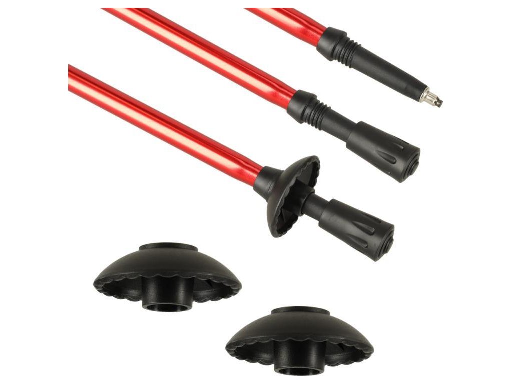 Pohodlné, ergonomicky tvarované gumové rukoväte skvele padnú do ruky a navyše odvádzajú pot. Veľkosť odnímateľného pútka sa nastaví plastovou prackou tak, aby vám na ruke perfektne sedelo. Palica je zakončená pevným oceľovým hrotom, v balení potom nájdete Nordic Walking topánočky a klasické pätky.