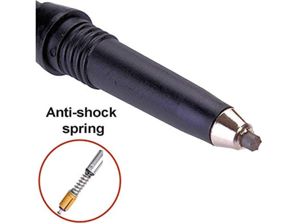 - Oceľový hrot je zakončený gumovými podložkami zaisťujúcimi stabilitu na bahnitom teréne.