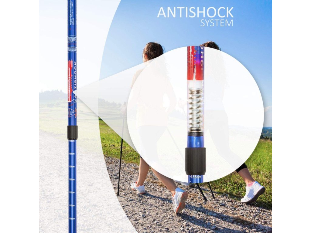 - Teleskopické trekové palice sú vyrobené zo 100% hliníka a sú vybavené vnútorným systémom tlmenia nárazov (Anti-Shock), ktorý zvyšuje bezpečnosť kĺbov.