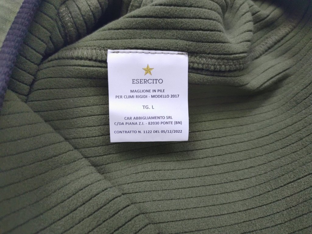 Oficiálny názov: "MAGLIONE IN PILE PER CLIMI RIGIDI - MODELLO 2017" - "FLÍSOVÝ (FLEECE) SVETROV DO CHLADNÉHO POČASIA - MODEL 2017".