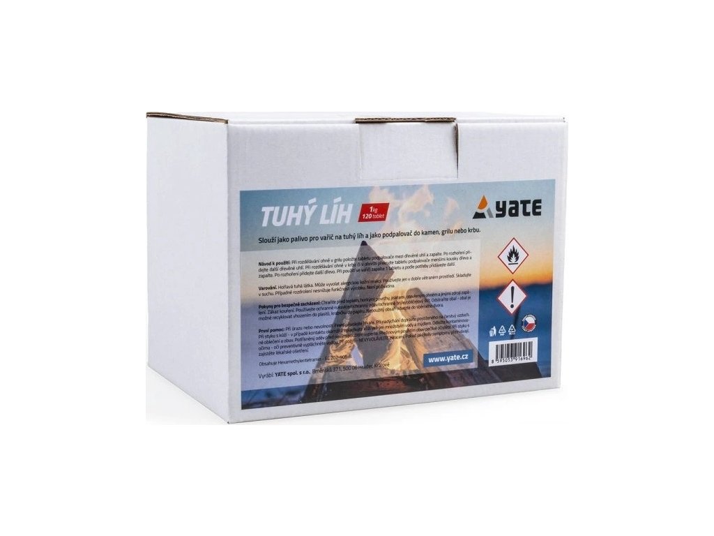 Tuhý lieh v tabletách 1,0 kg Yate® Pevný podpaľovač / Tablety v papierovom boxe