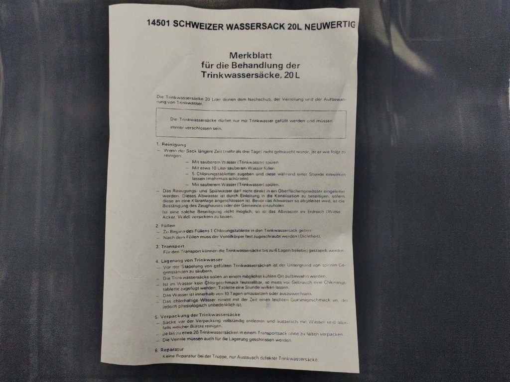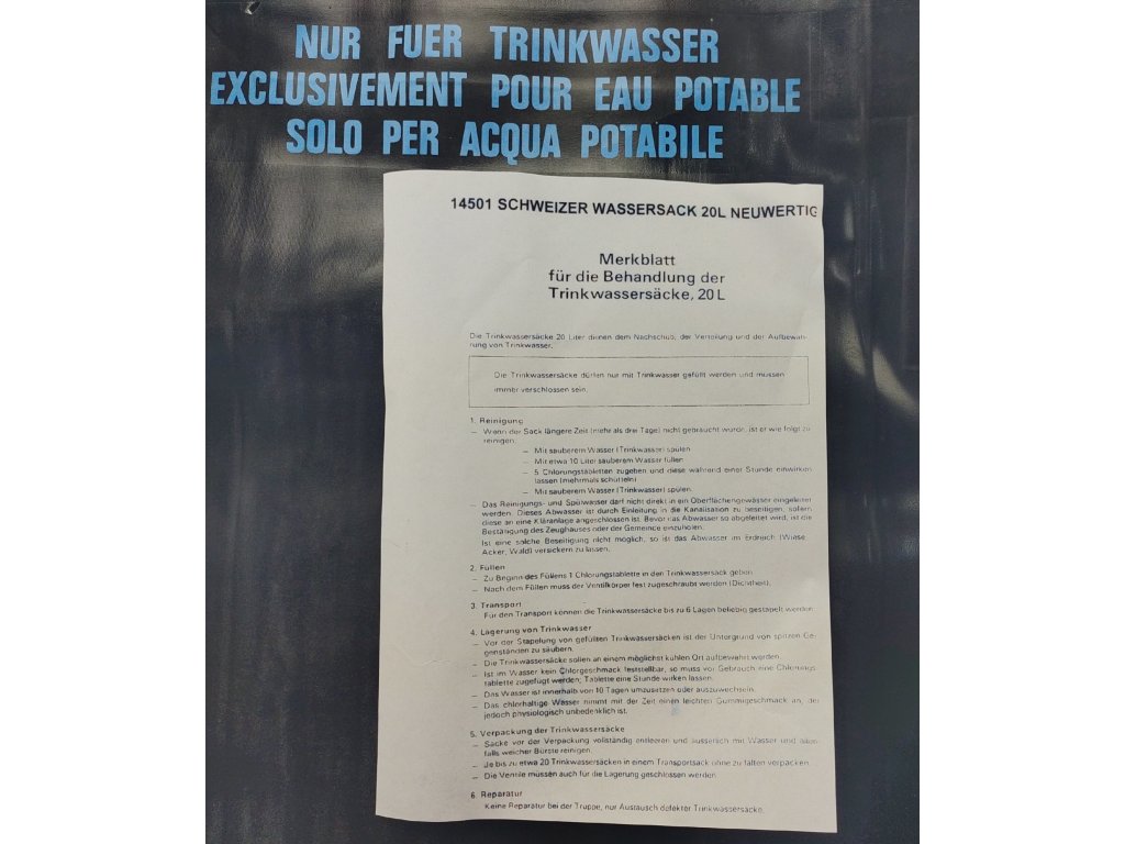 - Švajčiarsky armádny 20 litrový vak na solárny ohrev vody čierny.