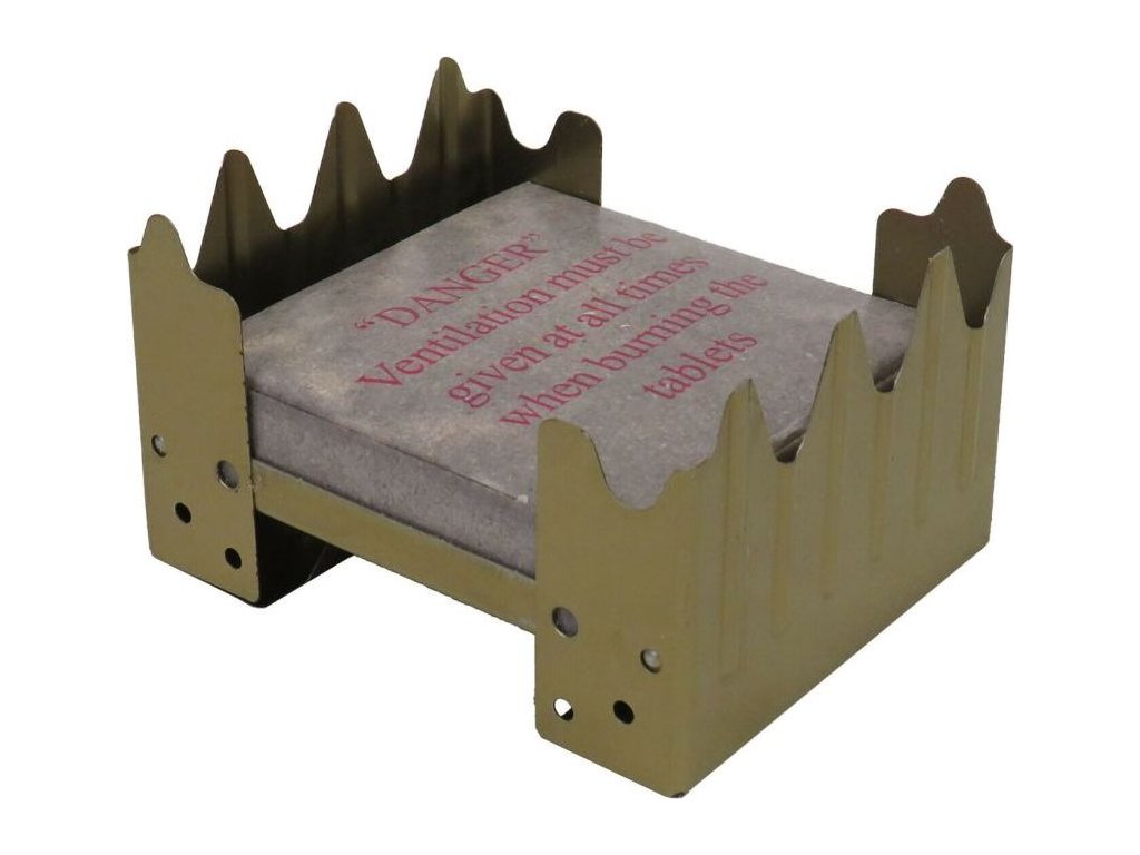 - UK BRITISH ROYAL ARMY COOKING FOLDING METAL STOVE SOLID FUEL WITH HEXAMINE TABLETS.