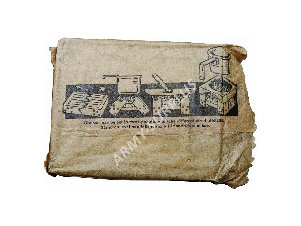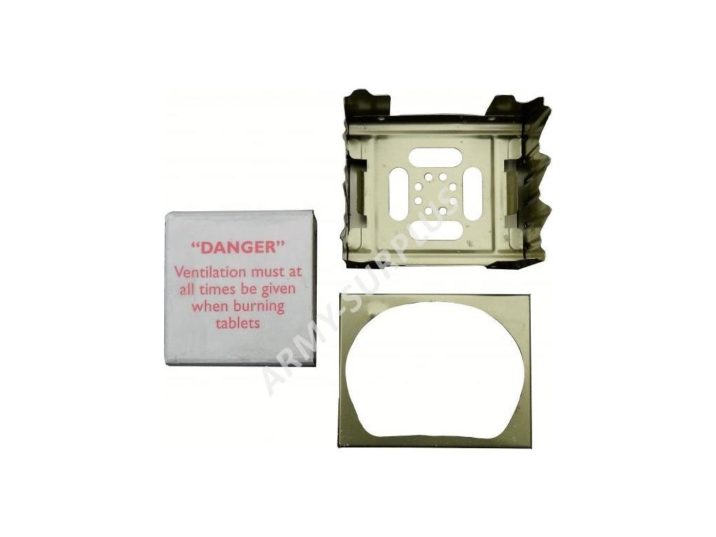 - Originálny britský vojenský skladací varič na tuhý lieh, vrátane balenia liehových tabliet.
