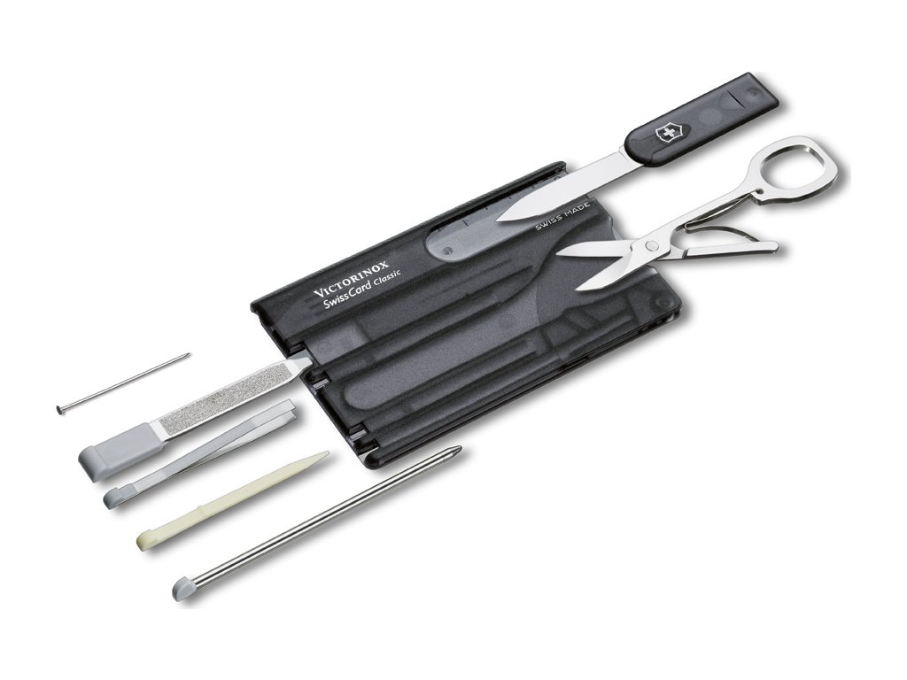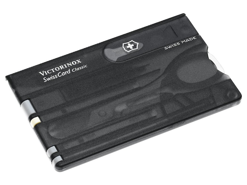Napriek tomu, že je SwissCard vytvorený v rozmeroch kreditnej karty, spája v sebe niekoľko užitočných funkcií. Súčasťou tohto revolučného „noža v karte“, ktorý získal cenu „Red Dot Awards“ za produktový dizajn, sú okrem iného plne funkčné rôzne nástroje.