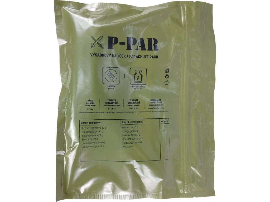 P-PAR výsadkový balíček (parachute pack), čo je balený potravinový príkrm pre jednotlivcov. Ide o koncept vojenskej potravinovej dávky, ktorý spĺňa diétne potreby Armády Českej republiky (AČR).
