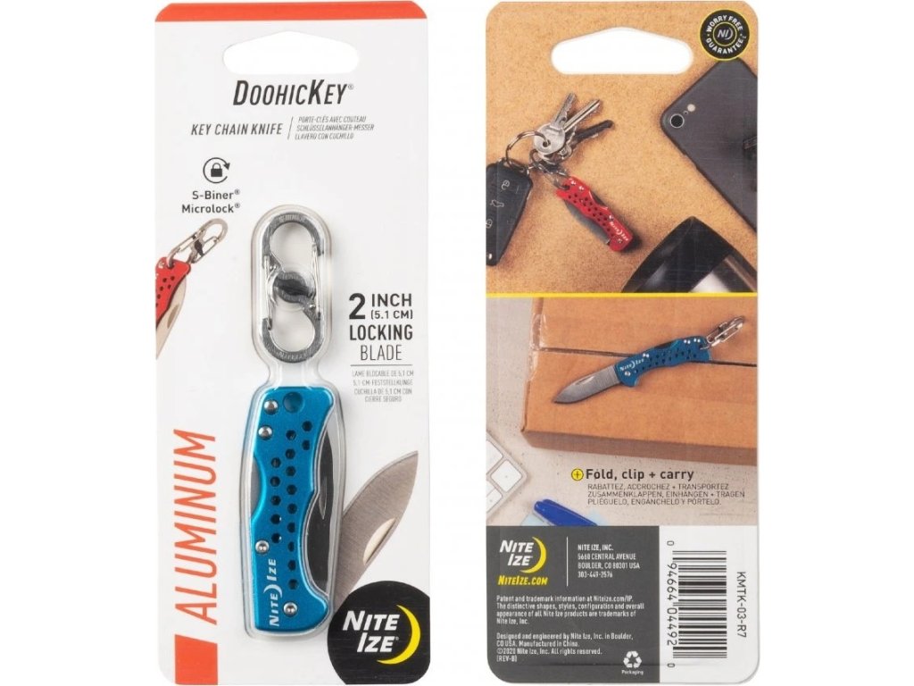 Zatvárací nôž Nite Ize DOOHICKEY je perfektný na každodenné použitie pre všetky bežné situácie. Aj keď ich má čepeľ iba 5,1 cm je vyrobený rovnako ako iné nože štandardnej veľkosti. Oproti nim sa však dá zavesiť na kľúče alebo iné príslušenstvo a môžete ho tak mať vždy po ruke.