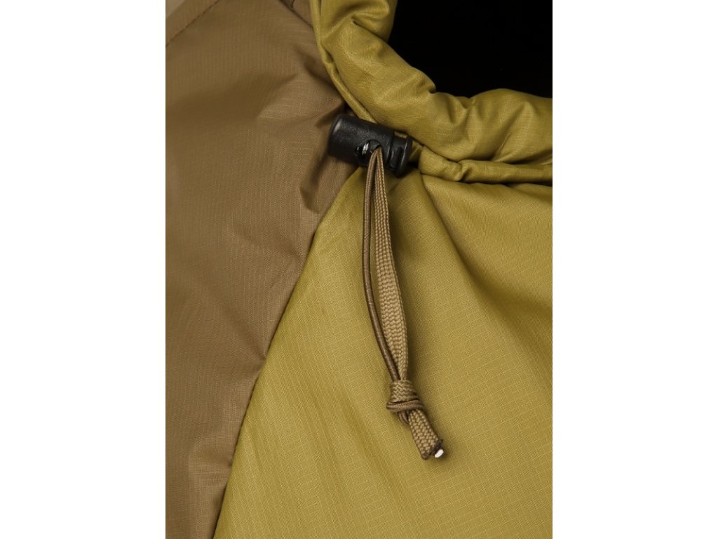 - Šnúrky zaťahovania kapucne a vnútorného goliera majú iný priemer a farbu, aby bolo jasné, ktorá časť spacieho vaku sa sťahuje.